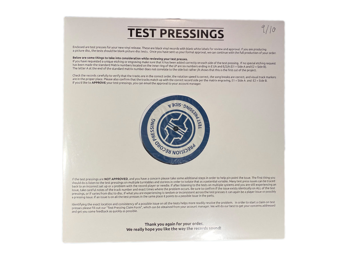 A test print copy of "Midwestern" on 140 gram vinyl. Limited to 10 test prints. Test print vinyls are issued to the artist when doing a run of vinyl records. They're literally "test copies" for the artist to listen to and to determine whether there are any issues with the audio quality. Thus, they are very rare and few. They come without an actual cover, in a sleeve and usually with the test print information on the sleeve.